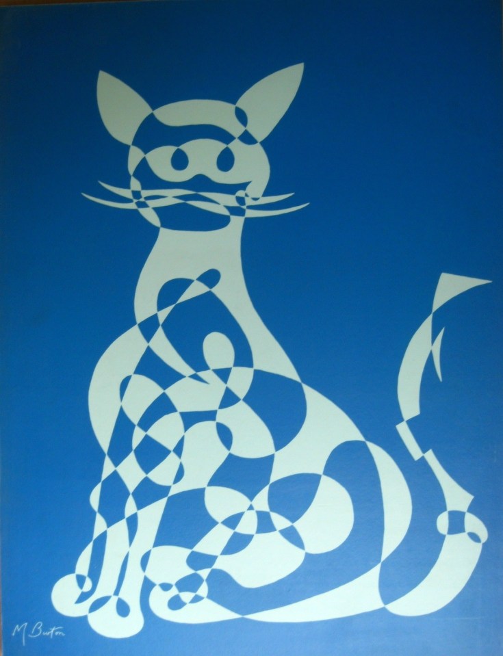 019. 1969-3. Cat. Alternate shade negative blue. Screenprint. ← Previous Next → Cat, single continuous line drawing, large screen print by Northern Screenprints Ltd 1969. Mick Burton, continuous line artist.