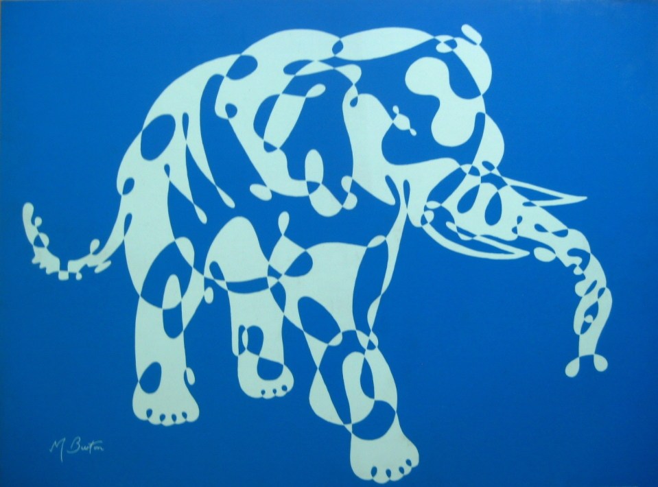 020. 1969-3. Elephant, screenprint. Blues. ← Previous Next → Elephant, single continuous line drawing, large screen print by Northern Screenprints Ltd. 1969. Mick Burton, continuous line artist.