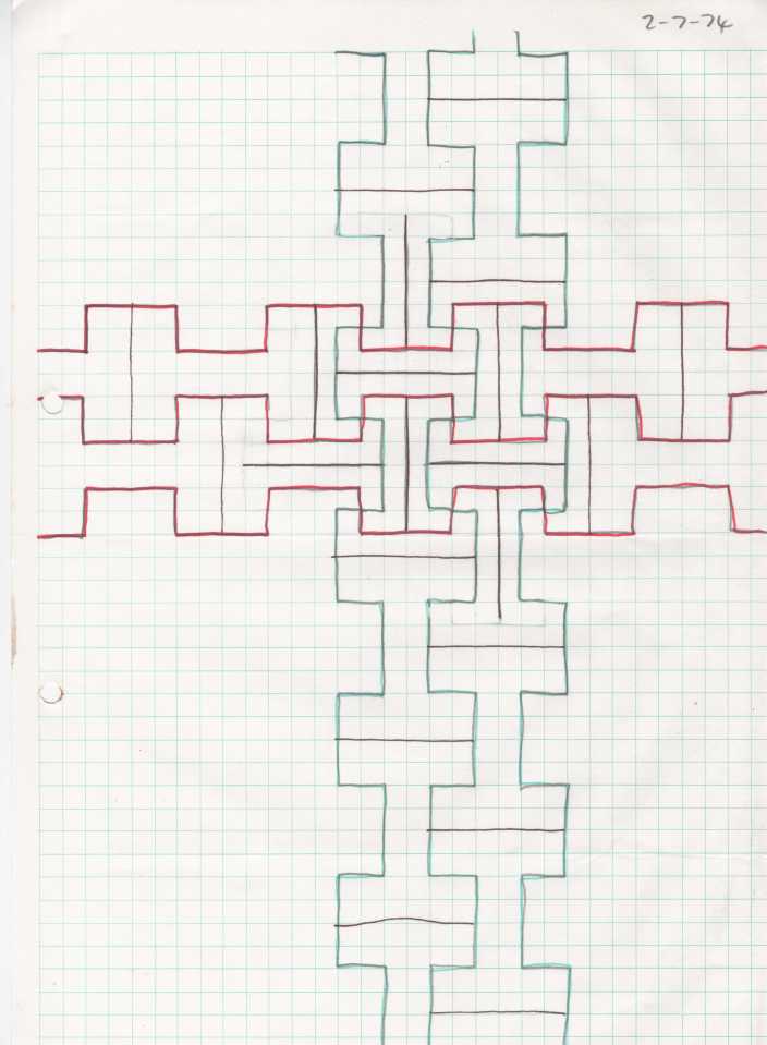 126. 1974-7. Dumbell repeat. ← Previous Next → Dumbell Repeat integrated. Mick Burton, continuous line artist, 1974.