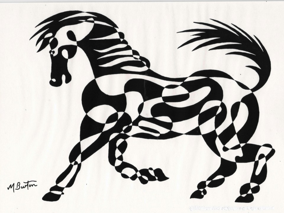 1966 A. Horse or Hyperion. Continuous line with alternate shading. Black.