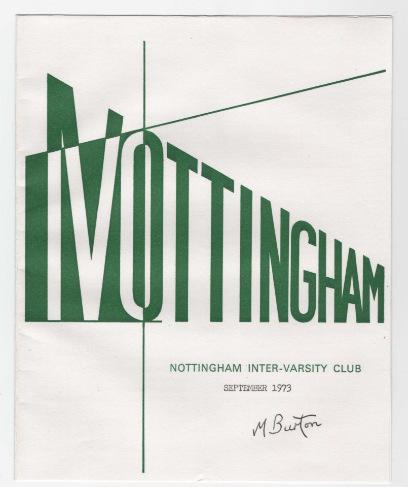 This was retained as the cover for 10 years with a different colour every month. I used alternate shading to highlight the IVC intiials. I lived in Nottingham for two years, working for Price Waterhouse the accountants.