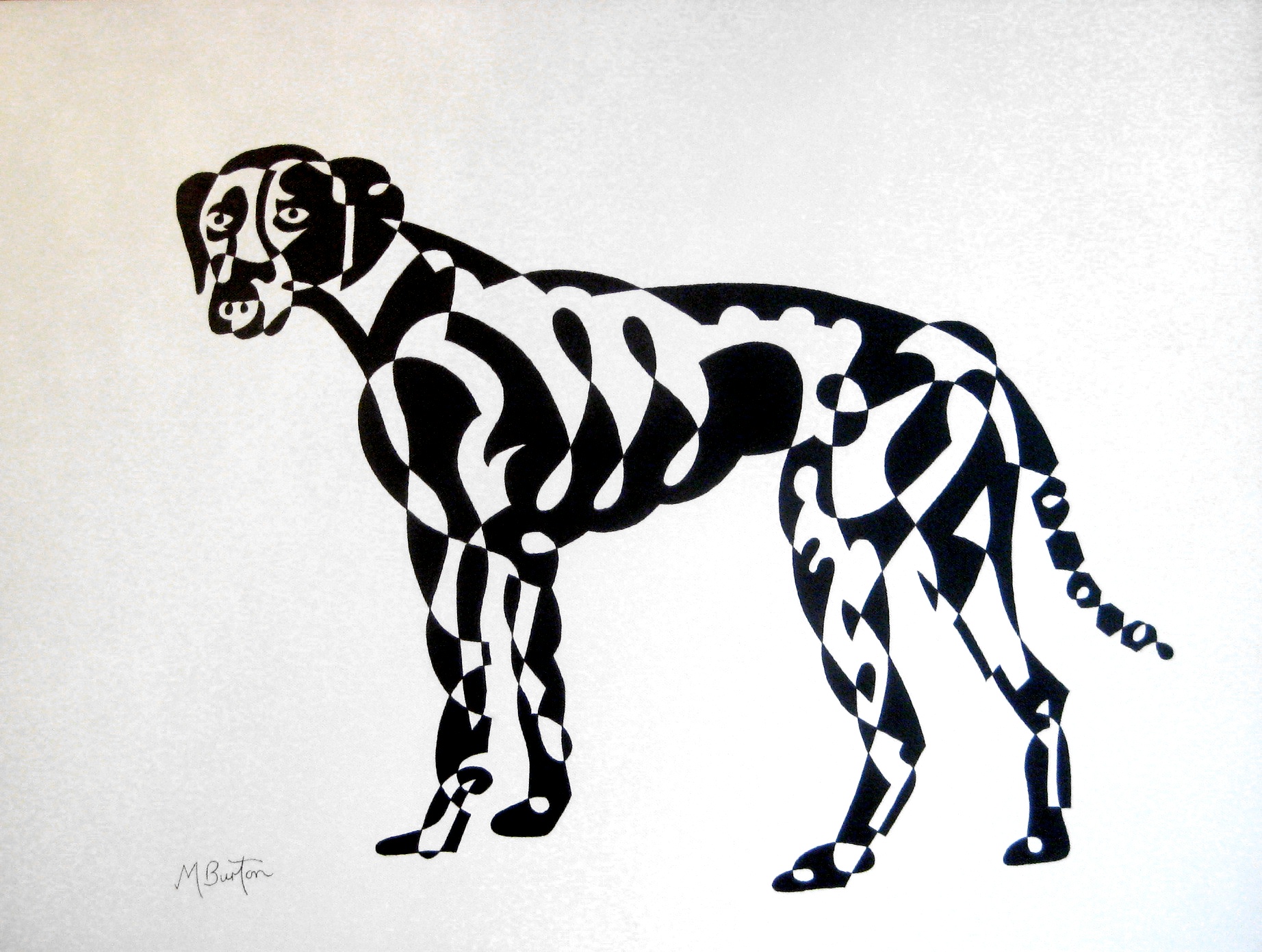 This painting of Dottie is life size and could leap off its owner’s wall at any moment. I have always liked the Black and White “Optical Art” effect since I first used it in the 1960’s.