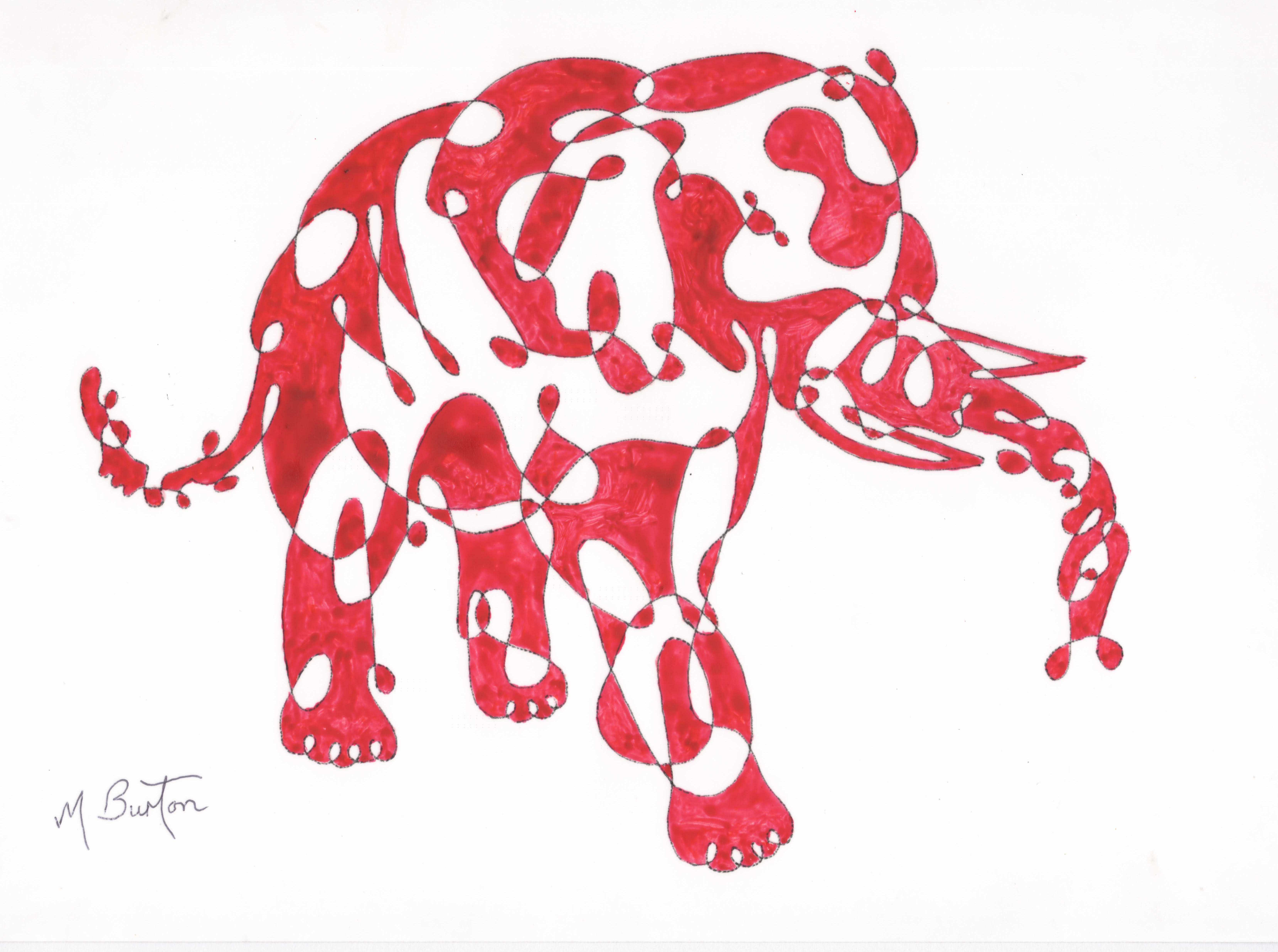Following our April Fools Day party on 1 April 1966 (the day after the General Election) when I did my Harold Wilson continuous line, our next venture was a Pink Elephant party. So I was asked to do another picture. This elephant was based upon a drawing in a book of animals. I added a dislocated tail and appropriate colour.