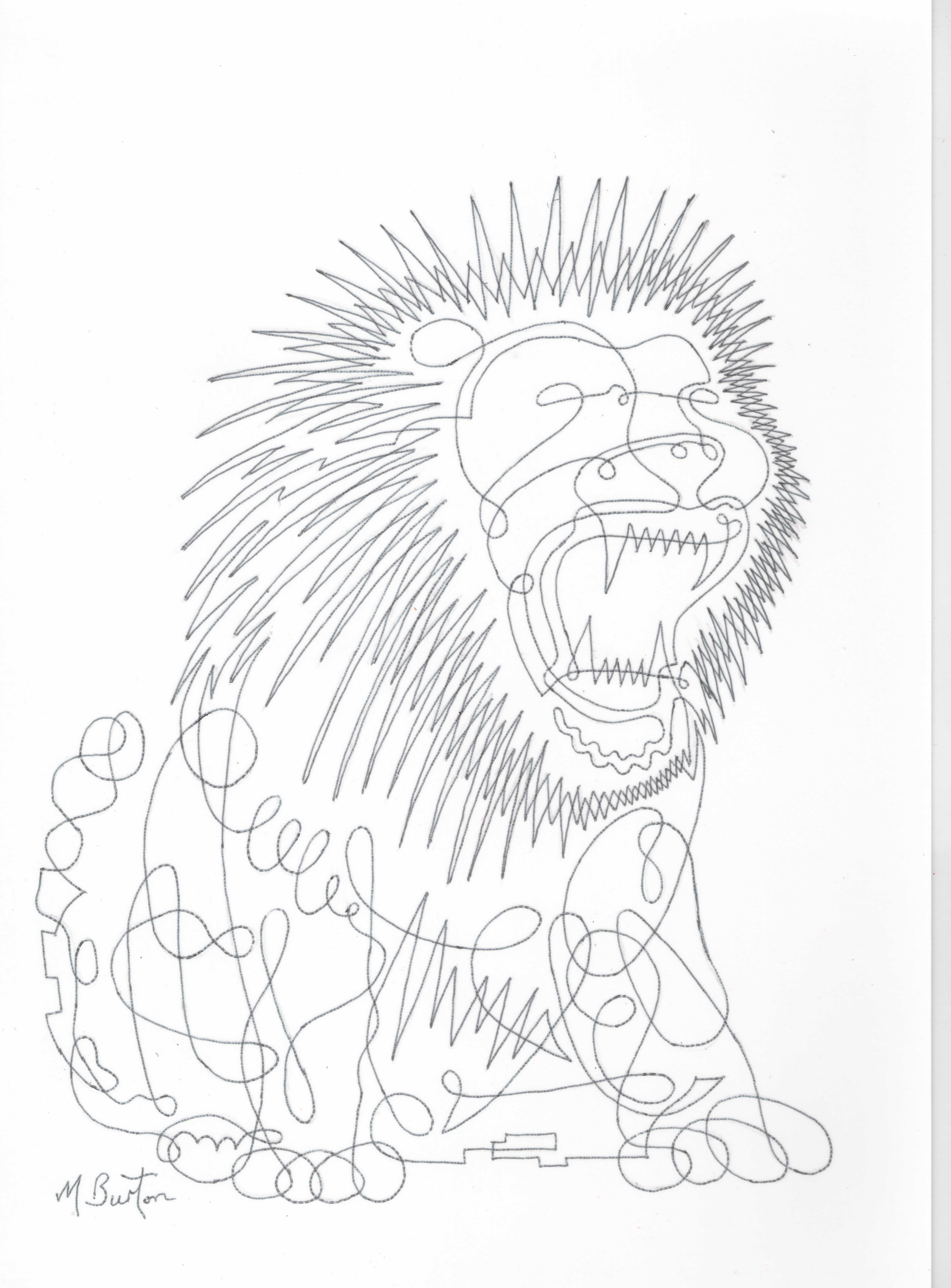I have a strong memory of sitting with a blank piece of paper in front of me and thinking that I had done the Horse, Cat and Elephant and they had all turned out well. I had not yet failed to create a picture better than I had anticipated. Would the Lion work out ? You just have to start and see what happens.