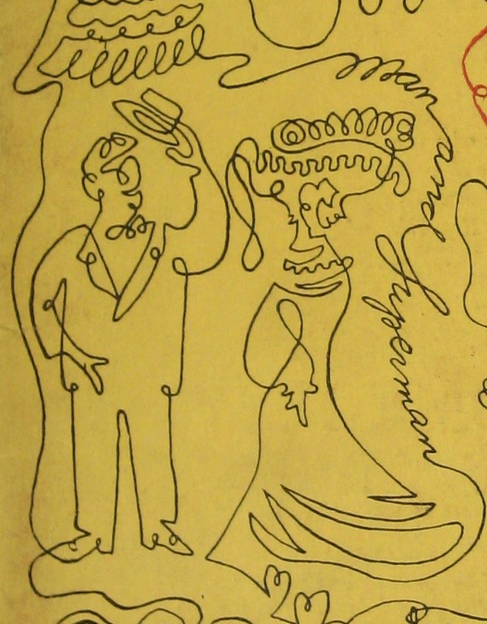 Man and Superman, detail of The New Season on Broadway, cover for Theatre Arts, October 1947 by Doug Anderson. One Line Drawing.