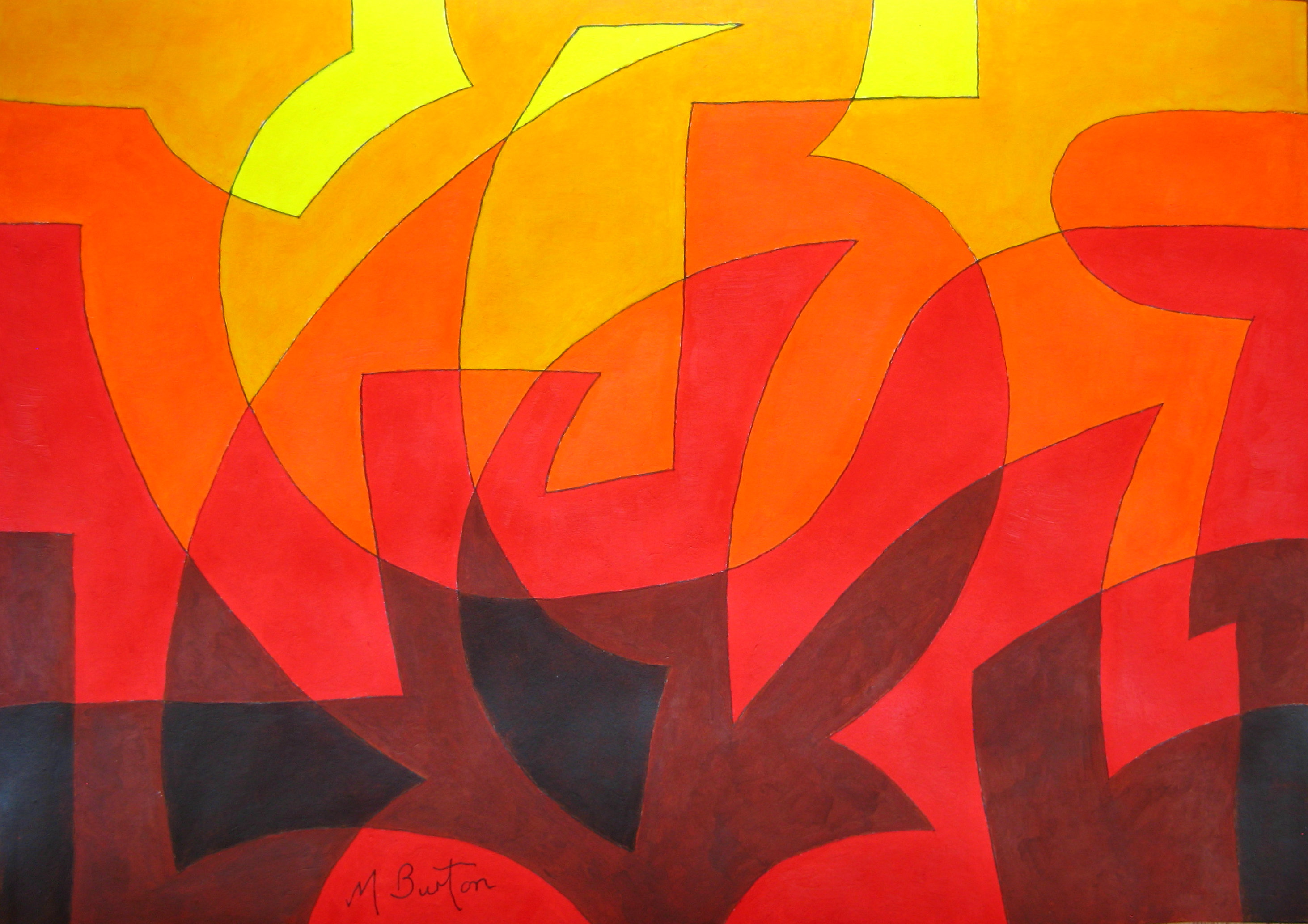 I also produced another similar abstract for the Demonstration at Stainbeck Arts Club to show the Spherical approach with a different flow of lines and colours.  I had coloured the drawing with a sequence from Yellow through Reds to dark Brown.