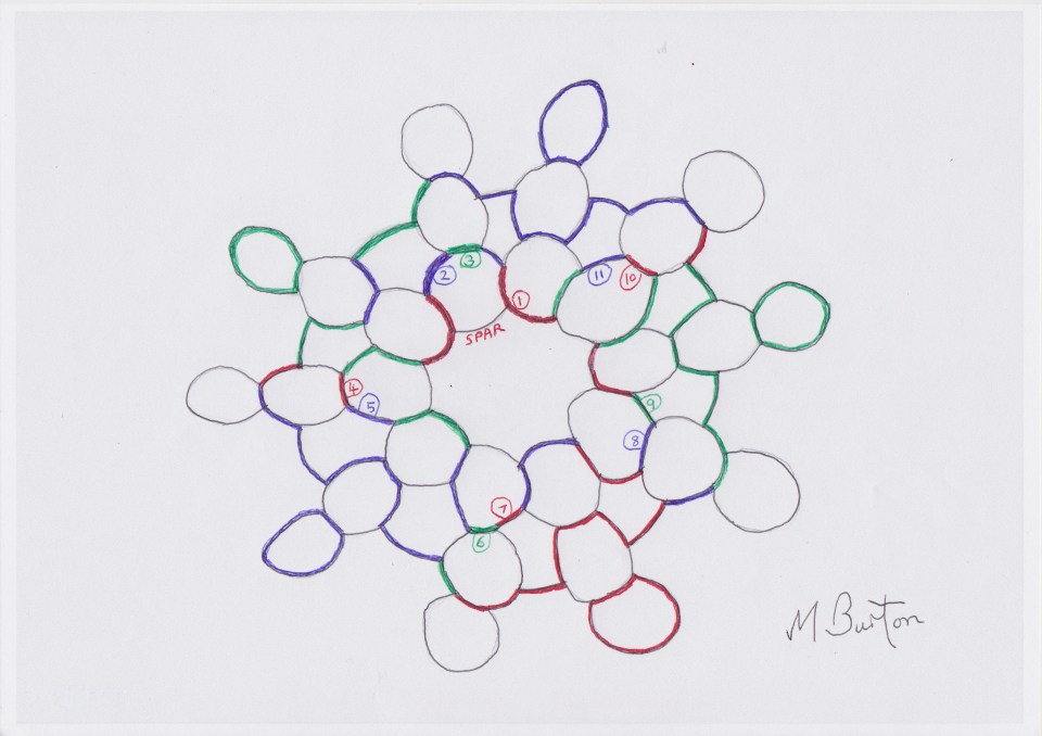 Completed Four Colour Theorem overdraw, based upon Skydivers formation design. Mick Burton, continuous line artist. ← Previous Next → completed Four Colour Theorem overdraw, on design based upon Skydivers formation design. Mick Burton, continuous line artist.