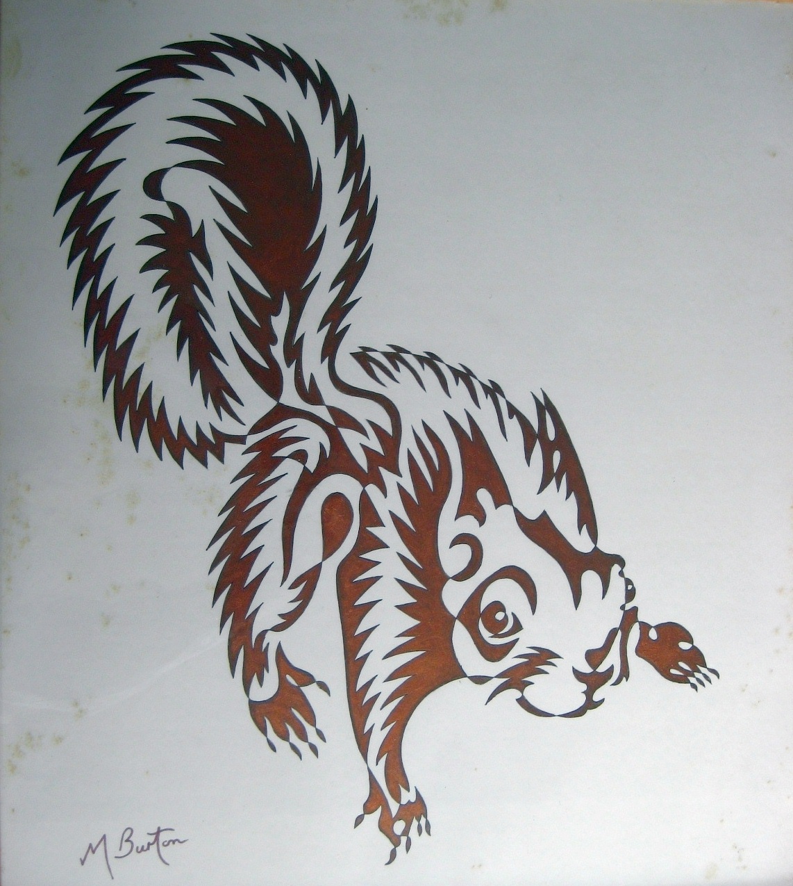 Red Squirrel with copper alternate shading from 1970. Mick Burton, Leeds artist.