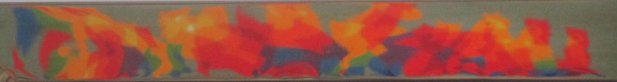 This resulted in gold and vermilion appearing on all outer areas and I thought that I needed a darker effect in the lower half of the image.  So I substituted cobalt blue for gold along the bottom legs of the horses and finished up also substituting, on an ad hoc basis, some dark blue, violet and green to try and naturally leach colour balance upwards to meet existing vermilion and gold.