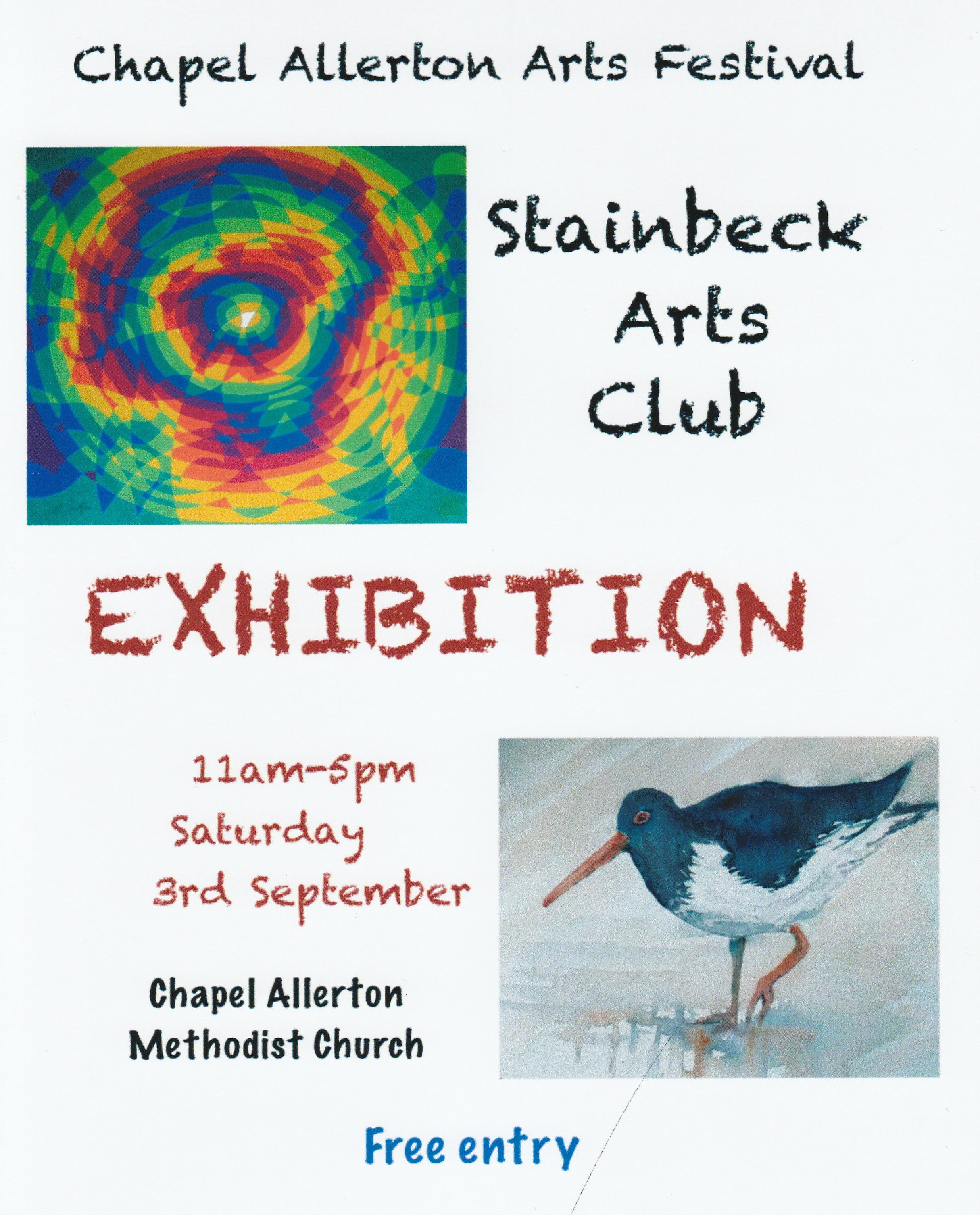 The Stainbeck Arts Club has its first Annual Exhibition following the end of Covid on Saturday 3rd September 2022. As usual it is in the Chapel Allerton Methodist Church and alongside the activities of the Chapel Allerton Arts Festival. Entry is free and a fine range of paintings and cards will be on view.