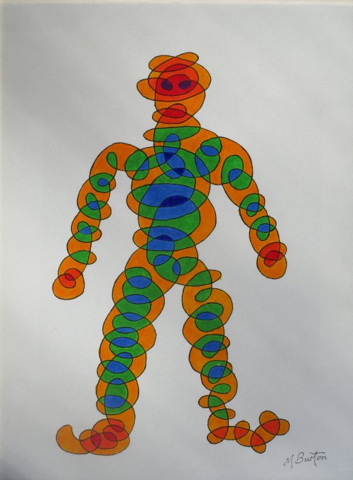Green Alien based upon Train Tracks Puzzle. Large 3.5.2022 Puzzle Madness. Mick Burton, continuous line artist.