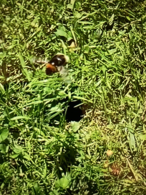 Bumble Bee hole in the lawn. Photo Mick Burton, continuous line artist.