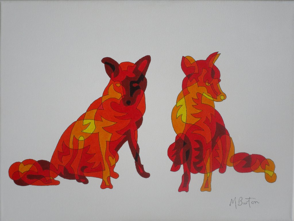 This single continuous line drawing is coloured to represent a “Twisting, Overlapping, Envelope Elephant”, which is Blue on one side and Red on the other. Mick Burton, 2013.