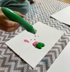 I have mentioned the Mobius effect. The Boomerang drawing has not produced a change in the number of surfaces but just altered their positions. Sides still equal surfaces. This is because I have used two half twists. If I had only used one half twist then the number of surfaces overall would become two surfaces, one colour for top and bottom and another for both sides.